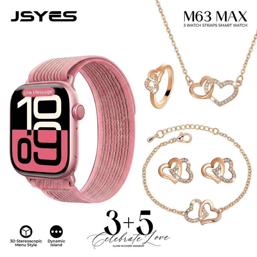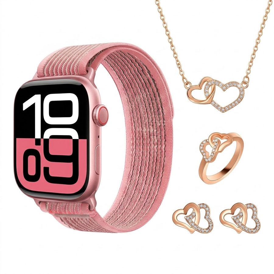 ساعة ذكية + طقم مجوهرات (3 قطع + 5 قطع)