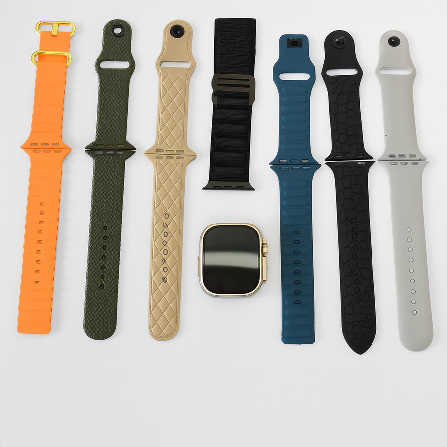 7 أحزمة متنوعة (سليكون، نايلون، جلد) بألوان جذابة تناسب جميع الأذواق
