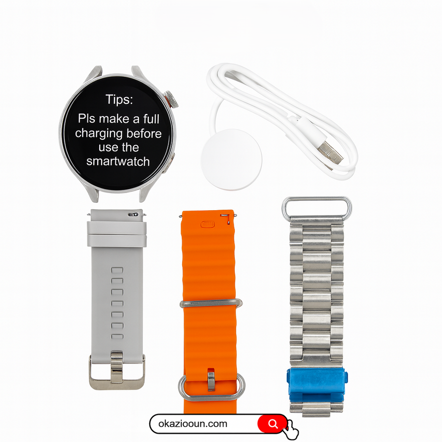 - 3 أساور إضافية (3+1) متنوعة (سيليكون – معدني – نايليون) عشان تناسب كل المناسبات.