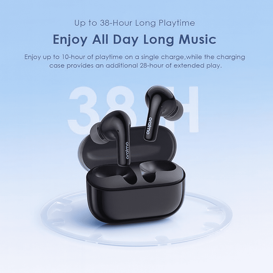 - عمر بطارية يصل إلى 38 ساعة (10 ساعات من التشغيل بالسماعات + 28 ساعة من علبة الشحن).