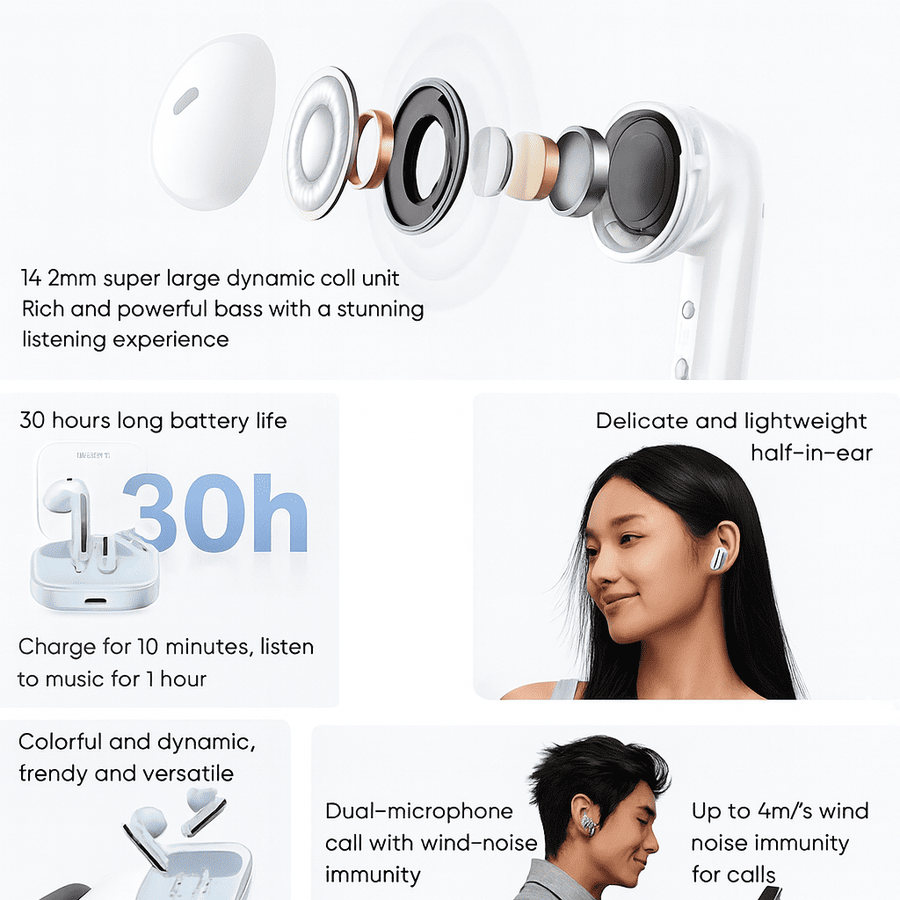 تصميم نصف داخل الأذن مريح وخفيف جدًا