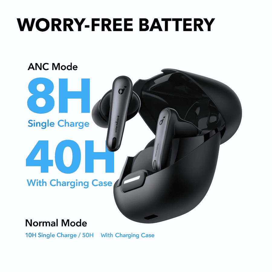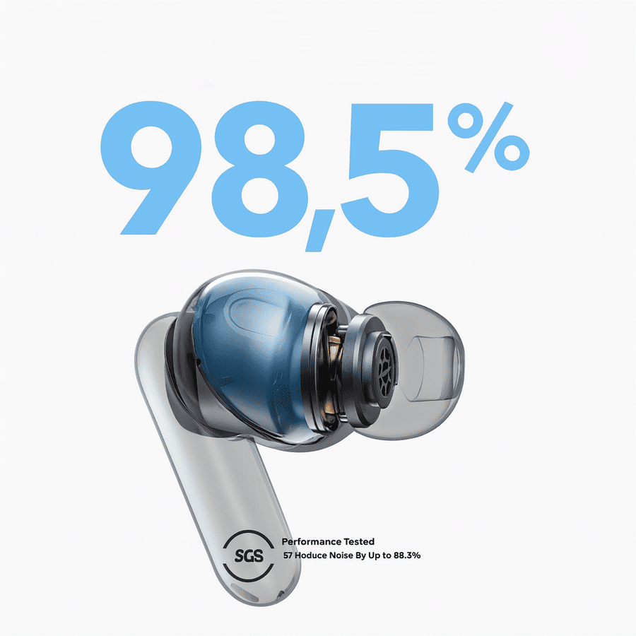 - تتعرف السماعة على بيئتك وتضبط مستوى الإلغاء تلقائيًا لتوفير أفضل تجربة هدوء في أي مكان — سواء في القطار، المكتب، أو الشارع.