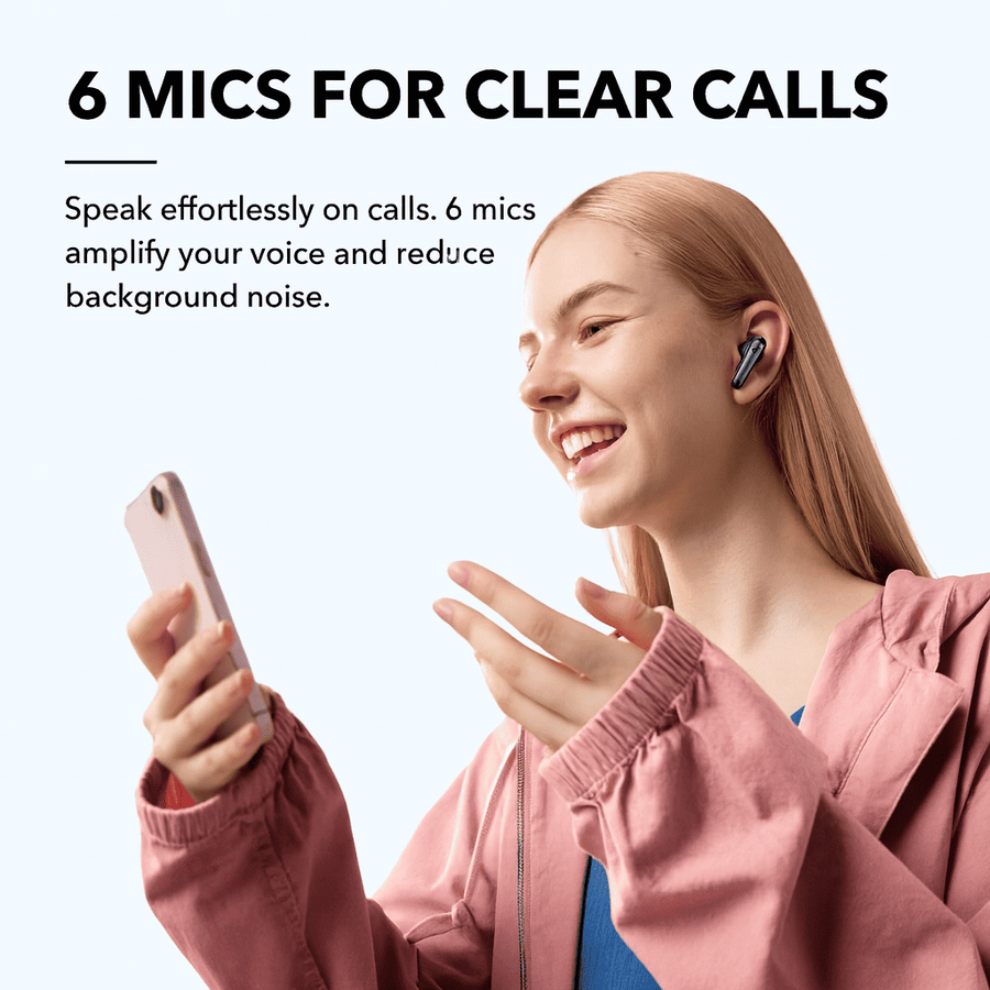 - مزودة بـ 6 ميكروفونات مدمجة وتقنية AI Noise Reduction لعزل صوتك عن الضوضاء المحيطة.