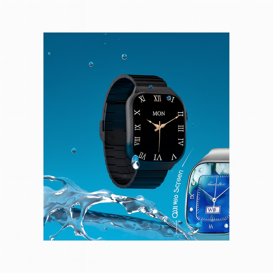 - شاشة عالية الدقة بحجم كبير مع واجهة كلاسيكية بالأرقام الرومانية.